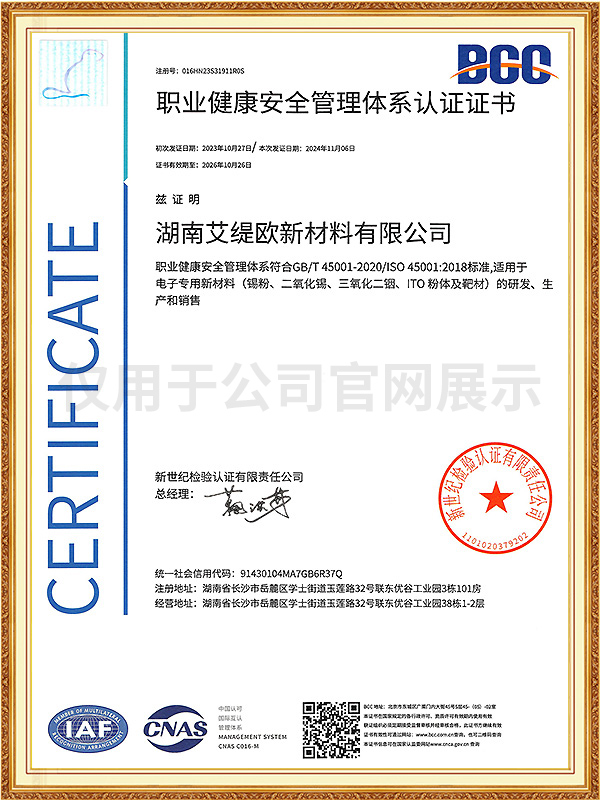 公司已通過ISO9001質(zhì)量管理體系、ISO14001環(huán)境管理體系及ISO45001職業(yè)健康安全管理體系認(rèn)證。